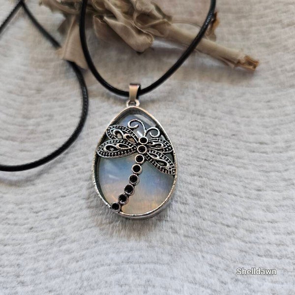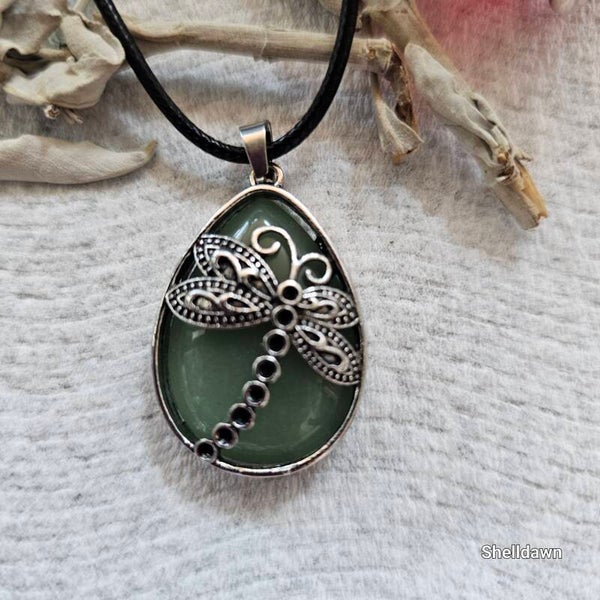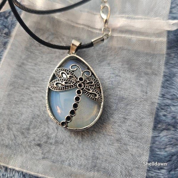 Crystal Dragonfly Pendant Necklace (Pick your crystal)