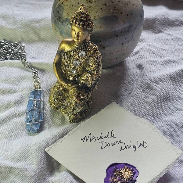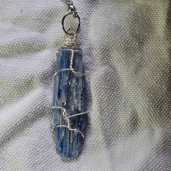 Blue Kyanite Wire Wrapped Pendant Handmade with stainless steel chain.