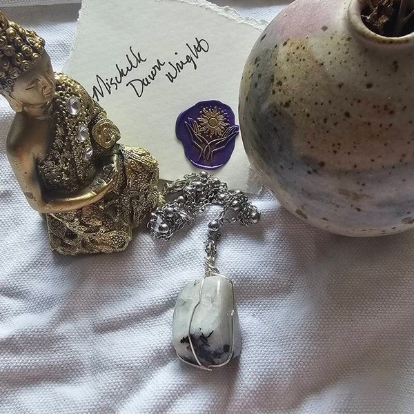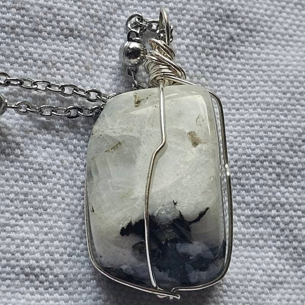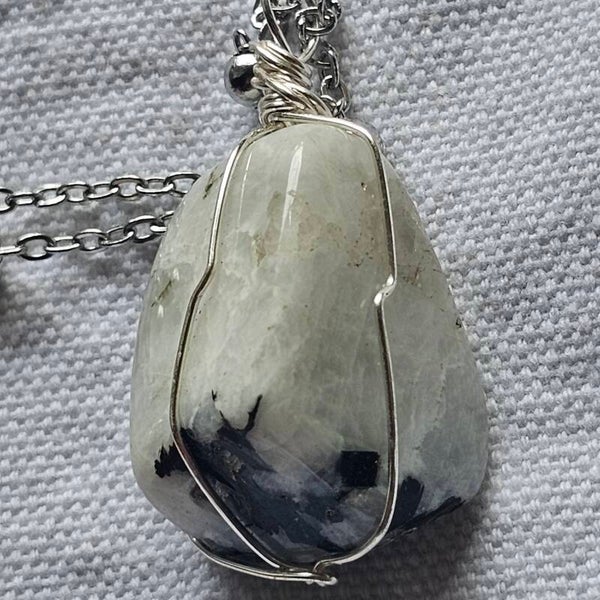 Zebra Marble Wire Wrapped Pendant on Stainless Steel Chain