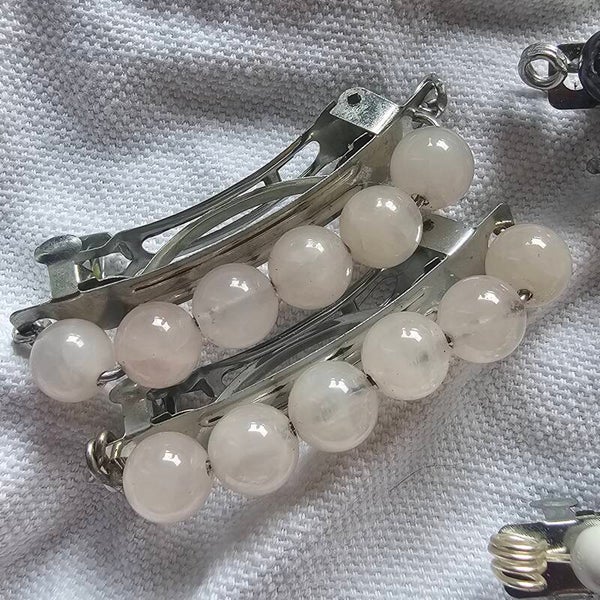 Choose Rose Quarts, Hematite or Howlite Crystal Barrets Handmade by Mischelle Wright